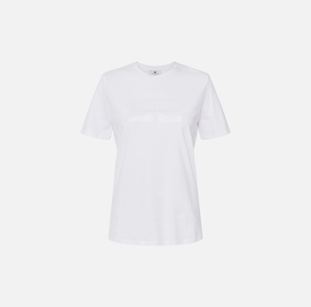 Elisabetta Franchi T-Shirt In Jersey MA00251E2 Con Logo Ricamato e Strass